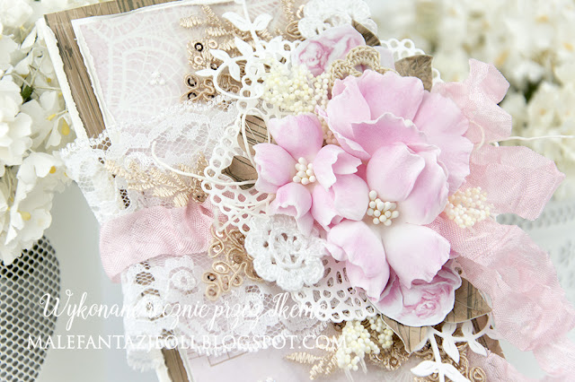I share with you my shabby chic style card with hand made foamiran flowers.