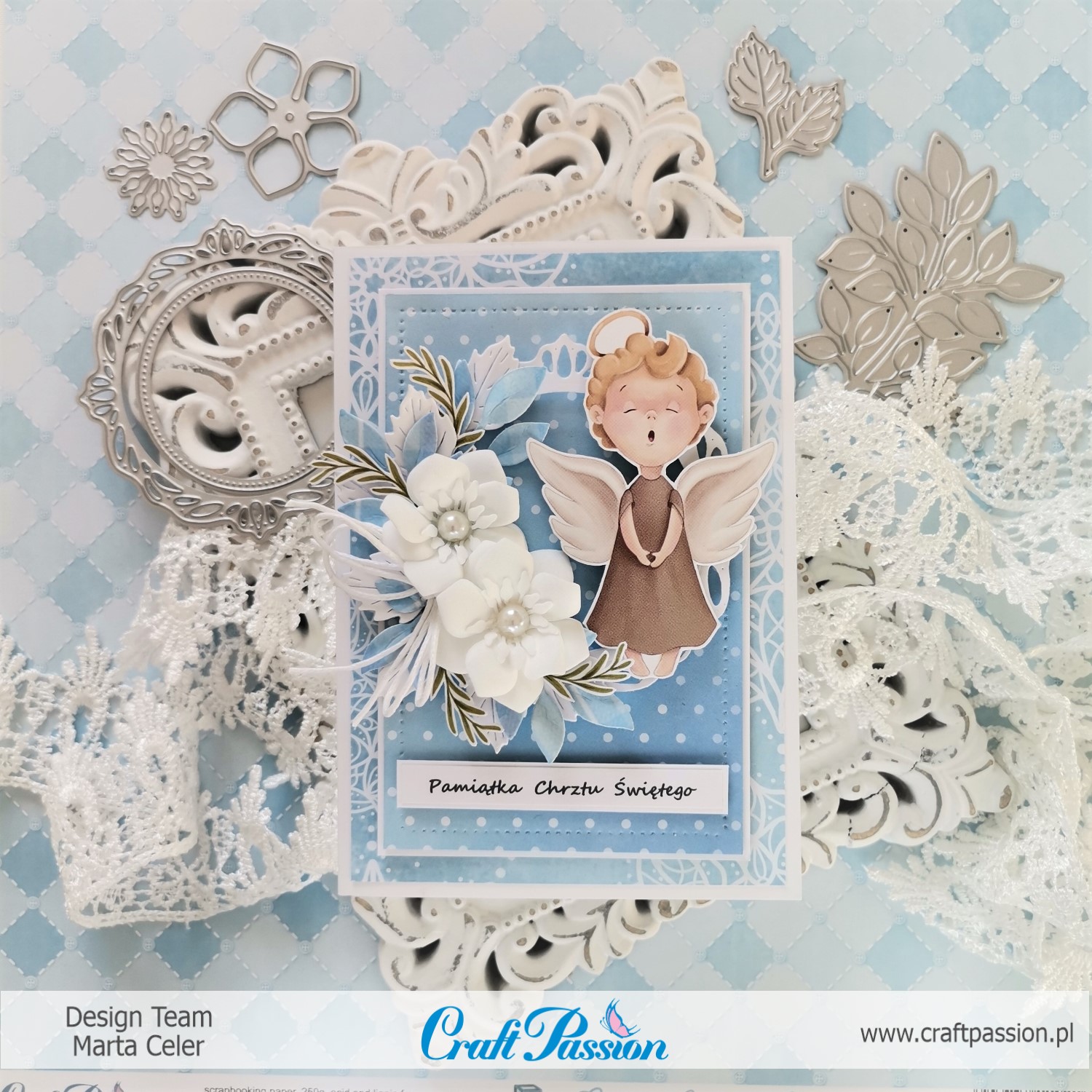 Wykorzystałam piękne błękitne papiery z kolekcji Cute Bunny Boy oraz arkusz Baptism Memories z ilustracjami do wycinania.